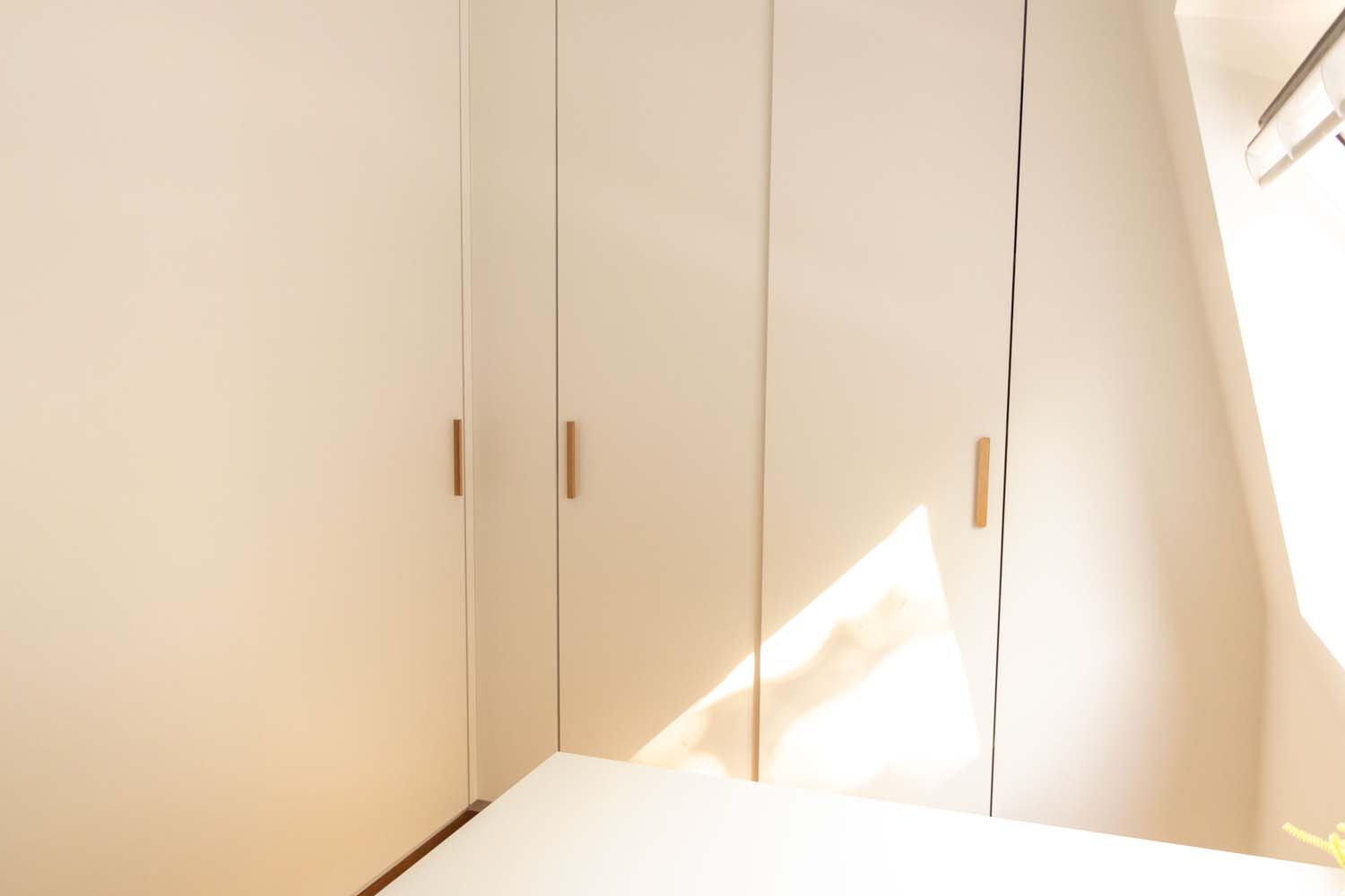 - Ingebouwde wasmachinekasten met handige uitschuiflade om de wasmand op te plaatsen.